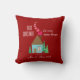 Esta almohada del navidad es el regalo perfecto para el nuevo dueño casero. Si características un gráfico de una pequeña casa linda con los corazones rojos que fluyen de la chimenea y de los árboles adornados al lado de la casa. El texto adaptable lee: Primer navidad en nuestro nuevo hogar. El texto adaptable en la parte inferior permite nombres y año.