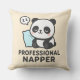Cute kawaii panda ilustracion con el texto "Napper profesional". Una almohada acogedora y divertida perfecta para dormitorios, salones o como regalo para estudiantes, jugadores y todo aquel que ame las siestas. Esta almohada se puede personalizar: puedes agregar tu propio texto, y también cambiar el color de fondo para que se ajuste a tu estilo — mantener la crema beige suave, o cambiar a blanco, gris, negro u otros colores para que coincidan con tu espacio. Creación firmada por ZR21Diseños.