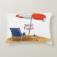 Profesor retirado, divertido en la playa, almohada acentuada.