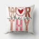 Bold and symbolic, this faith-inspired pillow features a crowned heart in place of the “O” in “WOR,” with the phrase “she is THY” and a reference to Proverbs 3:1. A powerful visual of divine love and identity—ideal for women of faith, spiritual retreats, or meaningful gifts.