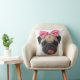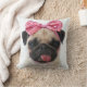 Cojín Decorativo Pug con arco rosado