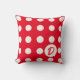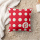 Cojín Decorativo Puntos de polka monograma en blanco suave en rojo