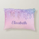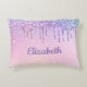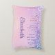 La almohada de la habitación es muy agradable, con un purpurina de imitación arco iris sobre un fondo rosado. Personaliza con su nombre en escritura púrpura.