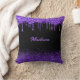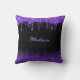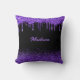 Moderno y elegante purpurina de goteo morado con chispas blancas en un fondo negro.