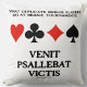 Si eres un jugador de bridge duplicado que juega en torneos de bridge, disfrutarás de esta almohada de tiro con los cuatro trajes de cartas junto con la frase latina para "Vino, Jugado, Conquistado": "Venit Psallebat Victis". Completamente dicho dice todo: "Lo que los jugadores de puente duplicados hacen en los torneos de puente - Venit Psallebat Victis".