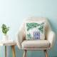 Una almohada lago-inspirada fresca que lee "qué sucede en las estancias del lago en la almohada del lago" en verde y azul. ¡Una gran adición o regalo para cualquier casa del lago!