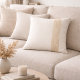 Defined by an offset vertical stripe of soft marble tones, this design pairs natural movement with clean ivory edges. The quiet contrast suits neutral living rooms, bedrooms, or reading chairs, adding visual structure and light balance without overwhelming surrounding decor.