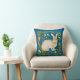 Lanza una almohada en un ilustracion de conejo salvaje, rodeado de ramas de árboles floridas, contra un fondo azul oscuro del denim