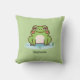 Una almohada verde con un ilustracion de una rana linda en su estanque y el texto de personalizable debajo! ¡Perfecto para darle un toque divertido a una habitación para niños!