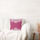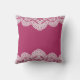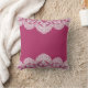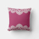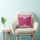 Un fondo rosa frambuesa brillante contrasta con un intrincado borde de encaje blanco en esta imagen, haciendo una bonita almohada que iluminará cualquier habitación. Añade tu propio texto personalizado, si quieres. *Nota: la imagen está impresa en la superficie y no contiene ningún encaje.* **Creada con obras de arte compradas en Digital Design Boutique en http://digitaldesignboutique.com .