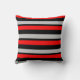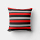 Añada un estallido del color a cualquier sitio con esta almohada roja, negra, y plata-rayada. Usted puede modificar esta almohada para requisitos particulares añadiendo su propio texto o gráficos, o cambiando las rayas negras al color de su opción.