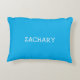 Cojín Decorativo Rayas azules pastel y blancas, nombre en el revers