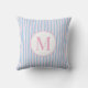 Funda de cojín decorativa simple, limpia y bonita con rayas verticales azules y rosadas pastel personalizada con tu inicial. Perfecta para tu dormitorio, habitación universitaria o cuarto de bebé.