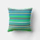 Esta almohada de tiro está decorada con un motivo vivo de rayas horizontales verdes, doradas, naranjas, azules, turquesas y blancas que van de la parte delantera a la parte trasera.