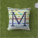 Cojín Decorativo rayas de chevron + abstracción + monograma, fresco