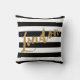 El nombre "Londres" de la ciudad rendido en falso oro hace una impresión contra poner en contraste rayas blancos y negros en esta almohada. Grande para el anglophile o alguien "del humo grande". Disponible con hacer juego productos.