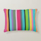 Este acento de almohada está adornado con rayas vibrantes en tonos rosa, rojo, amarillo, verde, violeta, negro, naranja, turquesa y mucho más.