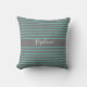 Cojín Decorativo Rayas Patrón Nombre Personalizado Gris Azul Turque