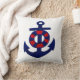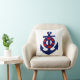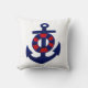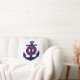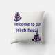 Personalice estas decoraciones de la casa de playa. Almohada decorativa del tema náutico con los azules marinos y anclas y boya del rojo. Diversión para los entusiastas del canotaje y de la navegación o los hogares del lago y las casas de playa. La plantilla personalizada del texto que dice la recepción a nuestro house de la playa se cambia o se suprime fácilmente totalmente antes de compra. Almohada hecha americana de Mojo.