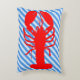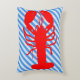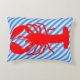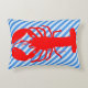 Tira una almohada con una langosta roja contra tiras náuticas azules y blancas.
