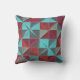 A vibrant geometric quilt of red, teal, purple, and gray triangles—bold symmetry meets tactile artistry