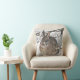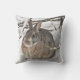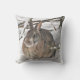 Esta almohada de tiro adorable ofrece una escena típica del invierno: un conejo de conejito marrón dulce del conejo de rabo blanco con los oídos grandes se amontona bajo refugio que busca del árbol de pino de la nevada.