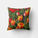 Un remiendo de tulipanes por el borde de la carretera. Hay tulipanes en una variedad de colores, incluyendo rojo, rosado y blanco, amarillo, y amarillo y naranja. Un pequeño remiendo del jacinto de uva puede ser el mirar a escondidas visto entre los troncos del tulipán.