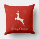 Cojín Decorativo Reno blanco clásico y Feliz Navidad en rojo