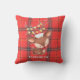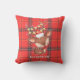 Esta es una adorable almohada de Navidades tirando un adorable reno bebé con un sombrero de Papá Noel con estrellas alrededor de sus cuernos, sobre un fondo rojo y negro de felpa. El nombre de la almohada de tiro es un personalizable que hace de esto un regalo maravilloso y un placer.