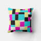 Un diseño abstracto original compuesto de rectángulos y cuadrados irregulares en rosa, amarillo, azul cian y negro.
