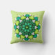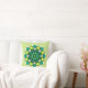 almohada de mandala floral con una flor verde creada a partir de un dibujo botánico abstracto de tinta y acuarela.