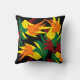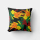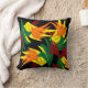 Esta impresionante almohada decorativa de tiro presenta un patrón abstracto de hojas en todos los colores del otoño: naranja, amarillo, rojo y verde. El diseño se repite en la parte posterior.