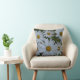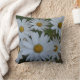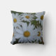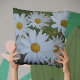 Una imagen de margaritas blancas de ojos amarillos, que ha sido ligeramente abstraída. La parte posterior de la almohada es un verde monocromo sencillo.