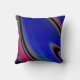 Esta almohada de tiro abstracto presenta un diseño fractal giratorio en azul oscuro, magenta, negro y gris.