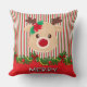 Add a touch of nostalgic charm to your holiday decor with this retro red, green, and white striped throw pillow featuring a cute reindeer design. Personalize it with a name to make it uniquely yours! Perfect for cozying up your living room, bedroom, or holiday photo corner. A festive accent that blends vintage Christmas vibes with modern personalization.