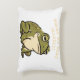 A cozy rectangular pillow featuring a retro frog embracing minimal effort with humor.