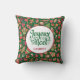 Esta fabulosa almohada verde de Navidades de 16" x 16" con un patrón de amigos, hombres de pan de jengibre, árboles de Navidad, adornos, ángeles y regalos que dice Feliz Navidad en francés "Joyeux Noel" y ¡tu apellido se vería impresionante en tu sofá, cama o sillas! Es muy festivo y combina con la decoración de los Navidades: es rústico pero retro, moderno y tradicional. ¡Te verás fantástico y te sumarás a tu casa con ese toque de Navidades!