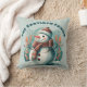 Personalizar esta almohada retro de snowman moderna de mediados de siglo con el nombre de tu familia o cualquier otro texto. Un regalo perfecto para los Navidades y otras vacaciones de invierno. El adorable muñeco de nieve está cubierto de nieve y delante de un elegante fondo nevado.
