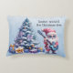Una almohada de acento muy hermosa de un Papá Noel fresco vestido de guitarrista de rock con el texto "Rockin' alrededor del árbol de Navidad" y un enorme árbol de regalos.