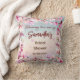 Celebre a la futura novia con esta hermosa y elegante almohada personalizada para la despedida de soltera. Con un borde de flores de magnolia en suave acuarela en delicados tonos rosa y rosado, mariposas revoloteando y un fondo degradado soñador, esta almohada añade un toque romántico y femenino a cualquier decoración de la despedida de soltera.