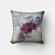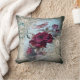 Hermosas flores de rosa rojas antiguas en la prensa escrita, con un broche de perlas y un collar falsos, una jaula de pájaros con un arco verde azulado para crear un lujoso, extravagante, elegante y de un estilo chic.