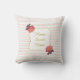 Rosas rosadas dulces y menta fresca sobre fondo blanco cojín decorativo rayado. Texto Hogar Dulce Hogar solo en el lado frontal puede ser personalizado. ¡Traiga un poco de dulzura y frescura a su vida! ¡Feliz compra! Por favor, vuelva!