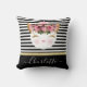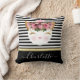 almohada monograma de princesa princesa princesa de oro Rosa. Cara de princesa de gato bonito en oro rosa, purpurina rosa y dorado, nariz con forma de corazón rosa y grandes latigazos purpurinas dorados en los ojos, con un arreglo floral de corona y rosas rosadas y rojas. Líneas blancas y negras con fondo rayado con cinta dorada. Fácilmente personalizar y añada su nombre para personalizar la almohada.