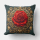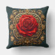 Cojín Decorativo Rosa Roja Ornable Con Marco Barroco Oro