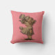 Niña pequeña con el arco en marrón sobre una almohada rosa 100% poliéster tirada. "16 x 16"