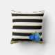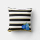 Cojín Decorativo Rosas azules en negro, blanco, banda de oro