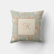 Cojín Decorativo Rosas blancas y rosadas con monograma sobre azul
