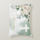 Primera comunión memorable con una almohada de tiro personal religioso Personalizado. Haga que el día especial de su hijo destaque con un diseño religioso personalizado. Crea un elegante ramo de rosas blancas con follaje verde y una cruz moderna, perfecta para un bautizo o una comunión sagrada.