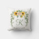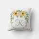 Monograma este hermoso girasol con una rosa de color rosa claro y cojín de lanzamiento de follaje. Disponible en dos tamaños cuadrados.