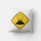 Erupción del volcán en una señal de carretera. Cuidado con los flujos. Una predicción del apocalipsis de 2012.